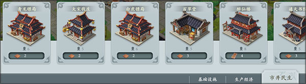- 功能齐全后,优先升级工坊与镖局,其次任务建筑,其余按需提升。