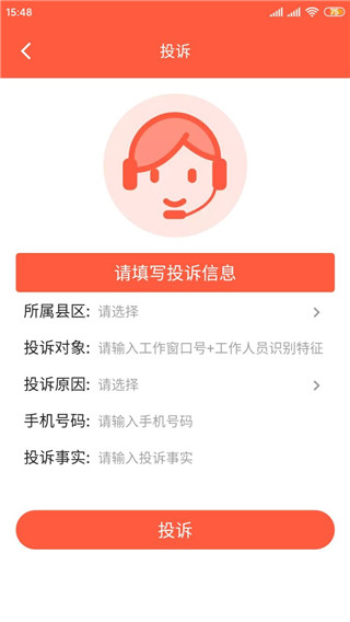 - 点击“投诉”功能,即可在线提交意见或反映问题;
