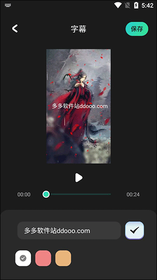 - 选择目标视频并确认,在弹出的文本框中输入字幕内容,设置字体颜色后点击“√”,字幕即会叠加至视频画面;