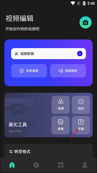 - 打开皮皮剪辑App,进入主页,点击“美化工具”中的“字幕”选项;