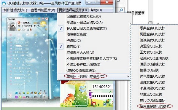 软件还支持在线加载热门皮肤资源。点击“更多操作与选项”主菜单中的“启用网上的热门皮肤”,即可直接应用预设的流行皮肤方案。