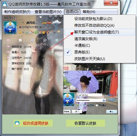 - 双击启动“晨风透明皮肤修改器.exe”即可开始使用。