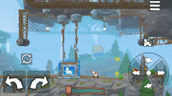 游戏采用直观的虚拟按键设计:左侧为移动控制(前进/后退),右侧为跳跃键。当玩家拾取载具后,操作逻辑会动态变化——左侧按键转为控制车辆的抬手与后翘动作,右侧则用于下车;同时,右下角新增前后加速及常规行驶方向控制,实现更丰富的驾驶体验。