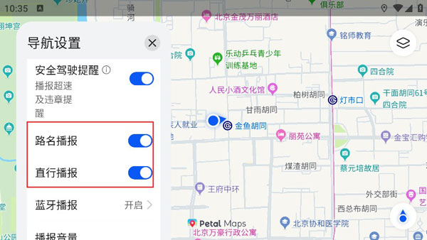 在“关于”页面连续点击应用图标,即可开启测试模式。启用后,导航设置中将额外显示【路名播报】和【直行播报】两个开关。默认状态下这两项功能已开启但不可见,测试模式让用户可手动关闭以减少语音干扰。