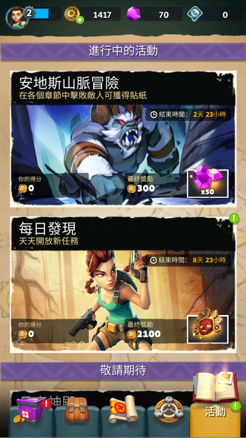 4. 进入活动页面,参与安第斯山脉冒险,兑换武器手册、古物碎片及医药箱等关键物资。