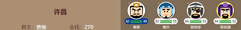 - 蓝色底纹表示当前守城武将(君主所在城仅君主可守);