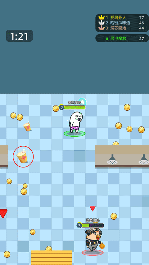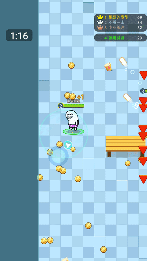 3、通过滑动屏幕控制角色移动,主动收集地图中散落的金币,用于后续升级或购买道具。