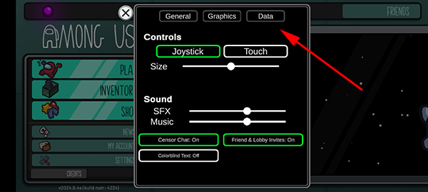 2. 在设置页面中选择“data”选项进入