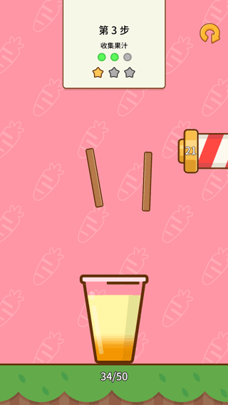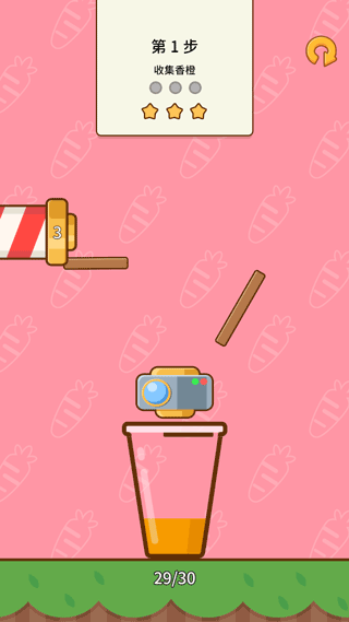 3、首先收集香橙,通过滑动或点击控制其下落位置,确保精准落入杯中。