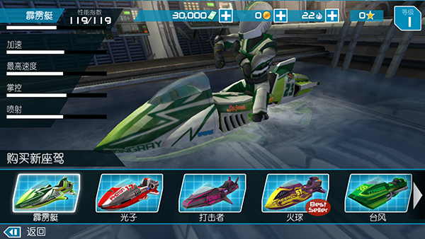 - 金币充足后,进入商城页面选购心仪摩托艇。