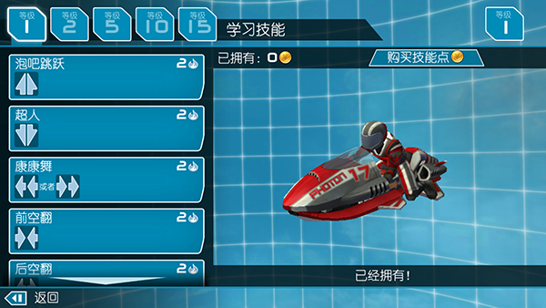 - 喷射加速:点击屏幕激活喷射功能,能量通过腾空及完成特技动作积累;