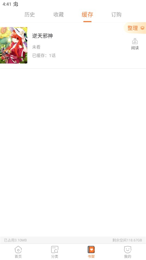 3、下载完成后,可在“书架”中找到已缓存的漫画内容,随时离线阅读。