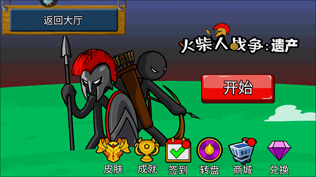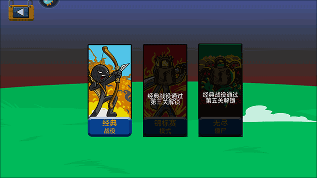 2、在模式选择界面,优先选择最左侧的“火柴人战争遗产”模式;