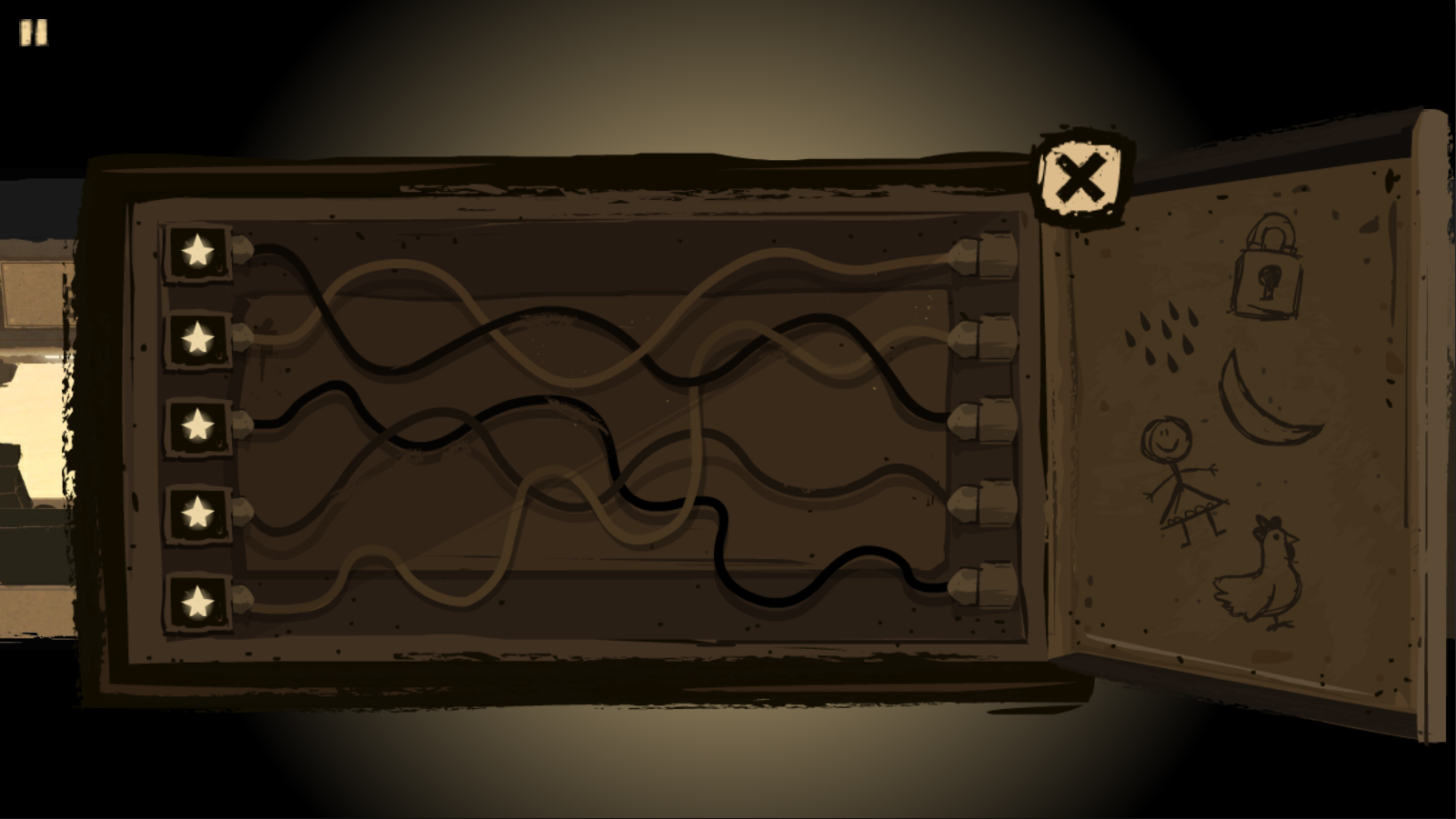 15. 电梯途中发生故障,需点击屏幕左侧图标进行修复。正确顺序为:星星、钥匙、鸡蛋、人形、云朵。