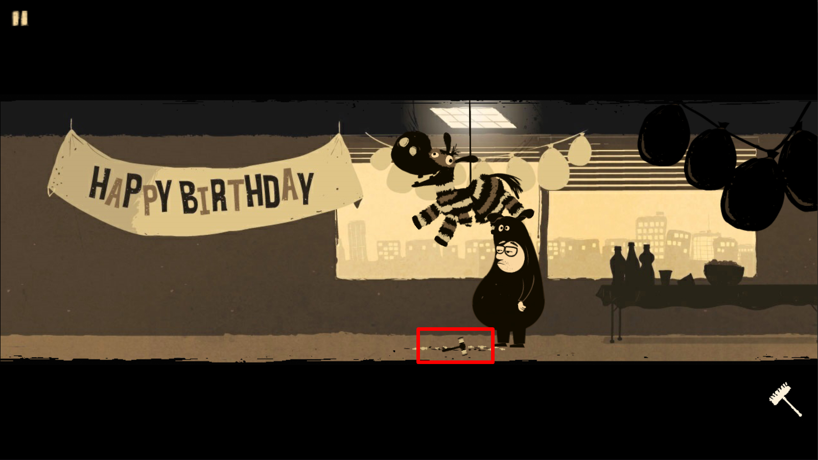 8. 使用右下角的扫帚敲击玩具马。