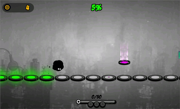 4、奇幻冒险世界:与墨点和他的伙伴们一起穿梭于一个布满危险尖刺与高空平台的超现实世界。