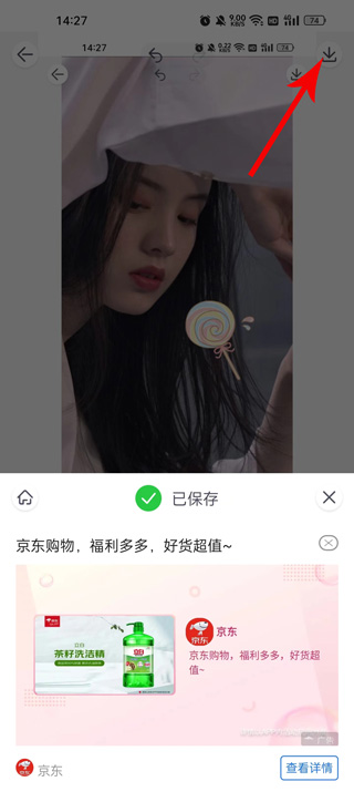 8、编辑完成后,点击右上角保存按钮,将作品导出至相册。