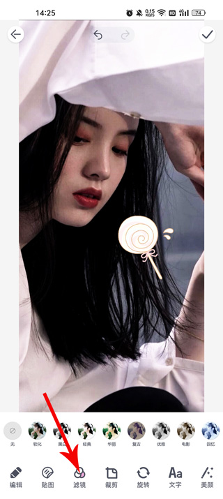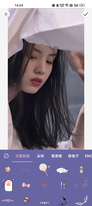 4、通过底部工具栏调用贴纸功能,为画面增添趣味元素;