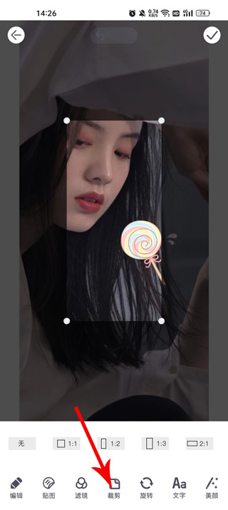6、如需调整构图,使用裁剪工具自由设定比例与范围;