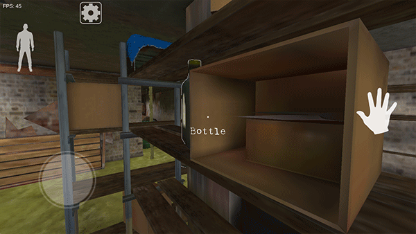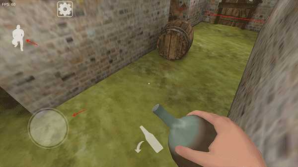 2. 通过屏幕上的虚拟摇杆控制角色移动;左上角的“人物”按钮可让角色下蹲,便于在关键时刻躲避或隐藏身形。