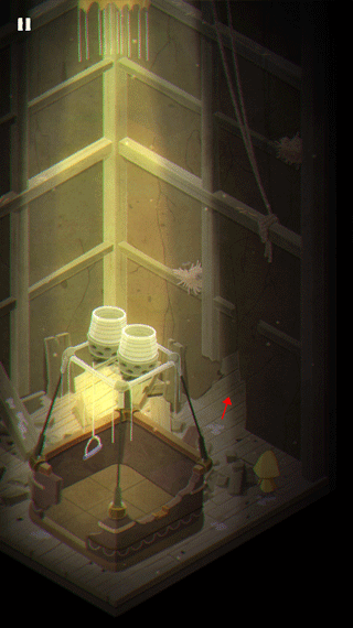 1、游戏开始时,摩诺正用门抵挡外界攻击。进入第一关后,他被困于类似吊篮的高处,需按住屏幕中的拉杆使自己缓缓下降至地面。