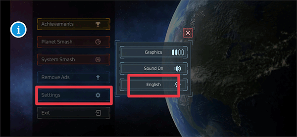 1. 进入游戏后点击设置按钮“Settings”,随后点击当前语言选项