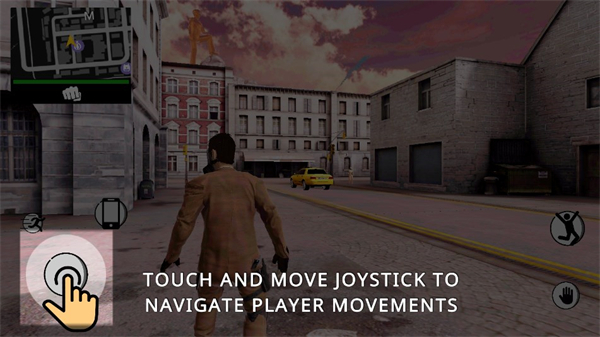 3. 屏幕左下方为虚拟摇杆,用于控制角色移动;右侧区域负责攻击与交互操作。