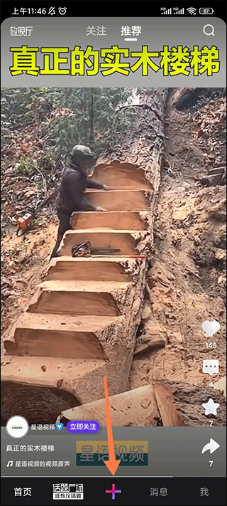 1、打开微视app,点击底部中间的加号按钮;