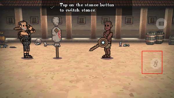 3、点击切换按钮调整站位,进入攻击教学:通过刺击、劈砍等动作削减敌人血量,直至击败对手。