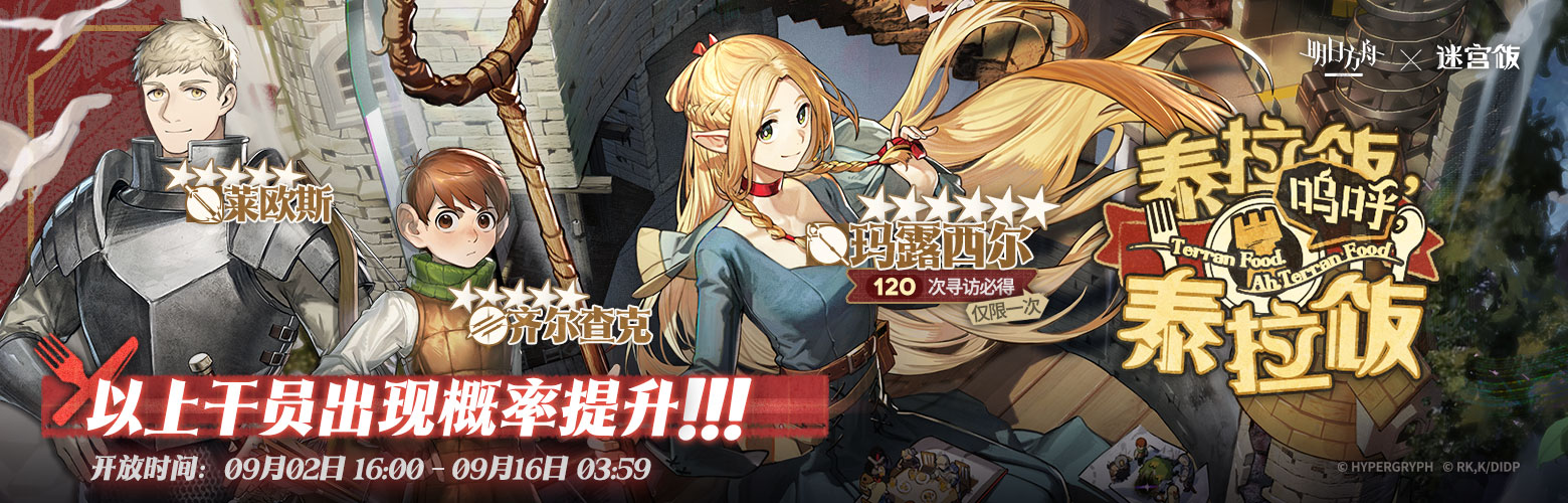 【迷宫探险召唤】“泰拉饭,呜呼,泰拉饭”限定卡池即将上线,活动时间为09月02日 16:00 至 09月16日 03:59。