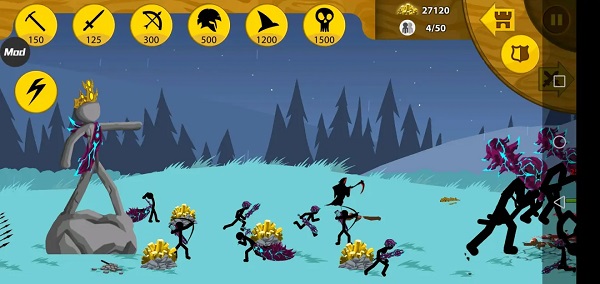 火柴人战争遗产是一款以策略为核心的战争模拟游戏,采用经典的火柴人形象,融合古代冷兵器战斗元素。玩家需建造矿工采集金币,并用金币生产士兵发起进攻。金币是发动攻势的基础,缺乏经济支撑将难以在战场上立足。