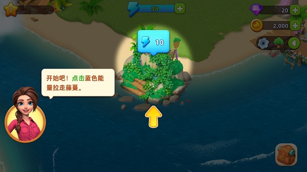 - 跟随小龙指引,清理藤蔓下方的杂草障碍。
