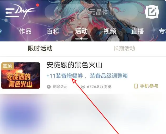 2. 在限时活动区域中,定位置顶活动【安图恩的黑色火山】,点击进入活动详情页。