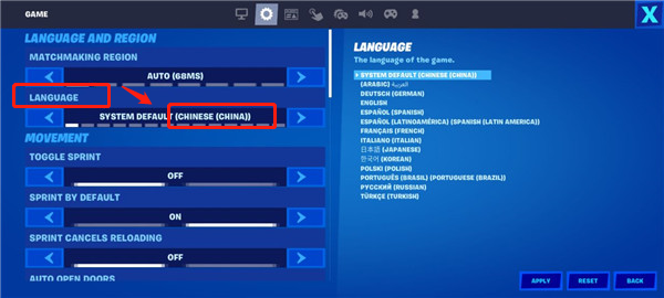 在设置选项中找到LANGUAGE(语言),选择“SYSTEM DEFAULT { CHINESE ( CHINA)}”,即可启用简体中文显示。