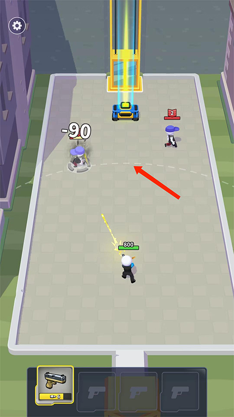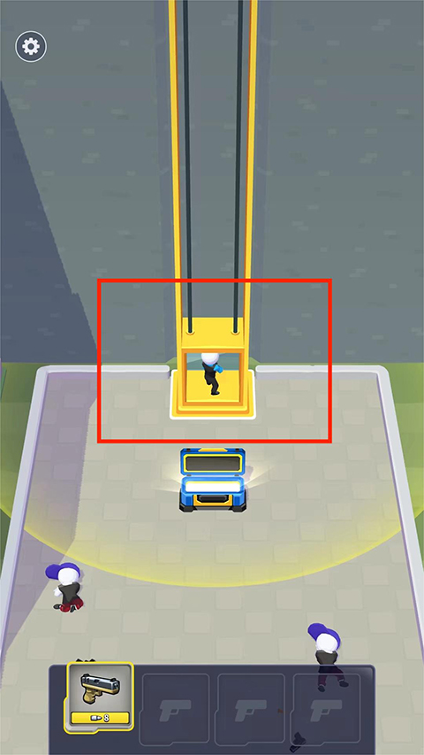 2. 在教程界面中,首先需消灭前方敌人并进入电梯。点击地面可查看当前攻击范围。