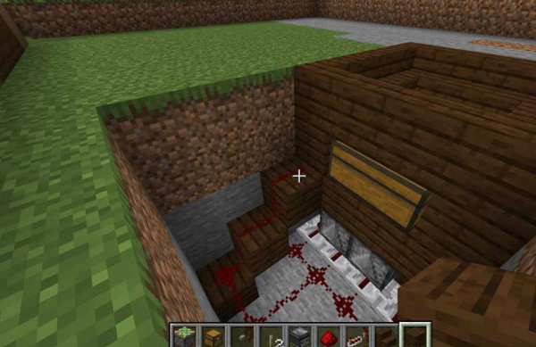 - 最后覆盖表面木板进行伪装,并在显眼位置安装一个按钮;