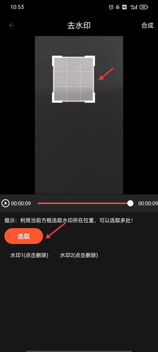 2、用方框框选需要清除的水印区域,支持同时选取多个位置。