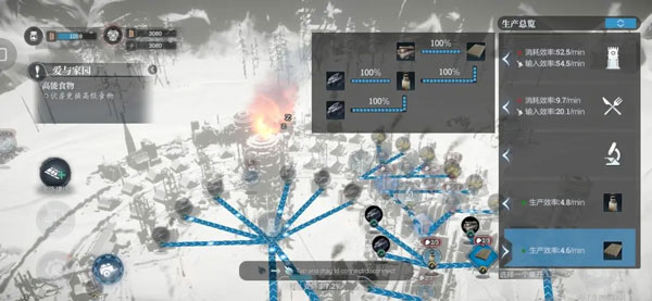 当前煤矿、煤油、木材的供给效率为100%,表示生产效率最大化且无人力浪费。若发现供给未达100%的情况,例如煤矿到煤油的供给率为78%,说明上级资源供应不足。此时应优先增加煤矿生产人员数量,如已满员,则可添加多条煤矿运输线路,使供给恢复至100%。