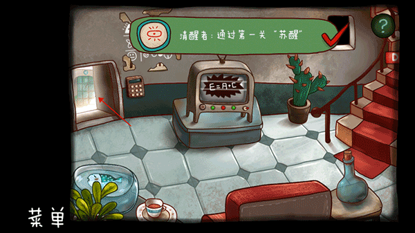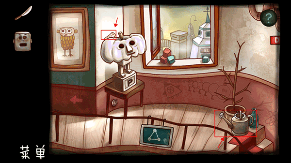 3. 点击地板上的纸张收集记忆碎片,再点击床边台灯插头开启照明。