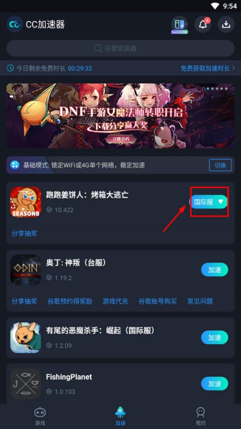 1. 启动加速器,在游戏列表中找到《跑跑姜饼人官方正版》,选择目标服务器(如国际服或港服);