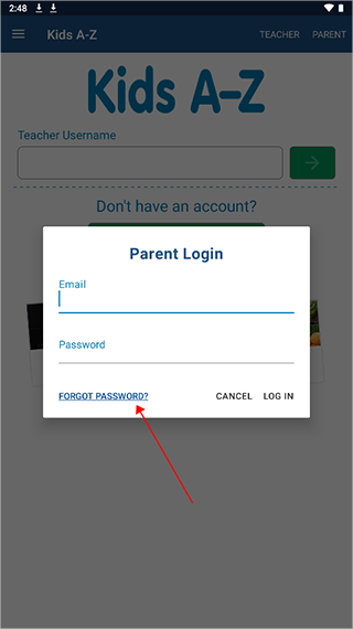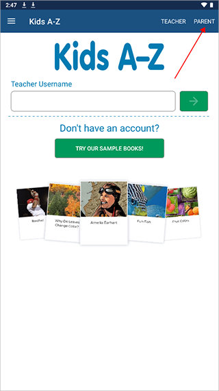 使用Kids A-Z前,家长需先在官方网站购买相关学习产品以获得教师账号。随后输入教师姓名,选择孩子姓名并设置密码即可完成登录。具体操作流程如下: