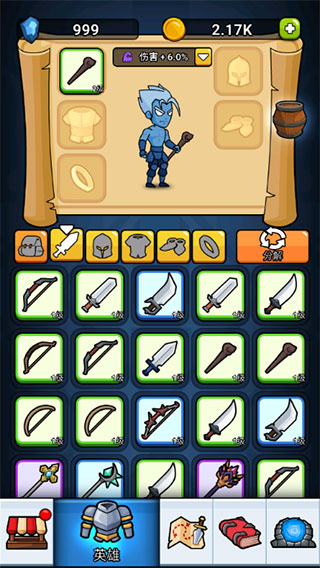 1. 进入游戏后点击“英雄”界面,即可查看当前佩戴的装备信息,不同品质(如绿色、蓝色、紫色)的装备在基础属性与附加效果上存在显著差异;