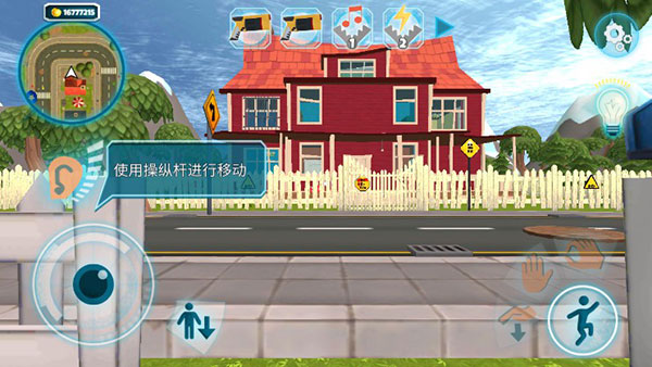 3. 开始新游戏后,目标为前往对面房屋,使用虚拟摇杆控制角色移动;