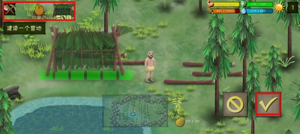 - 建造是生存关键,点击左上角斧头图标进入建造界面,提前收集所需材料;