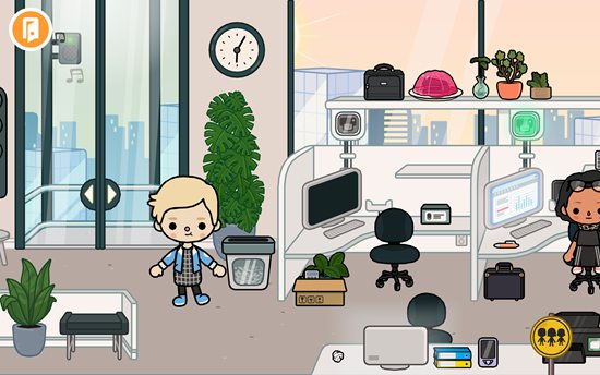2、点击任意建筑即可进入内部。例如进入商业大楼后,会看到布置齐全的办公环境,工作人员正在各自岗位上忙碌。