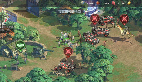 派遣部队深入未知地带,击败途中遭遇的NPC军队或野生巨兽后,即可将该区域纳入领地,并在其上建造新建筑。