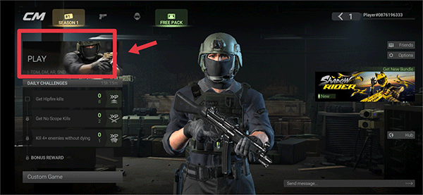 1. 启动游戏前建议开启网络加速器,进入主界面后点击“Play”开始匹配;