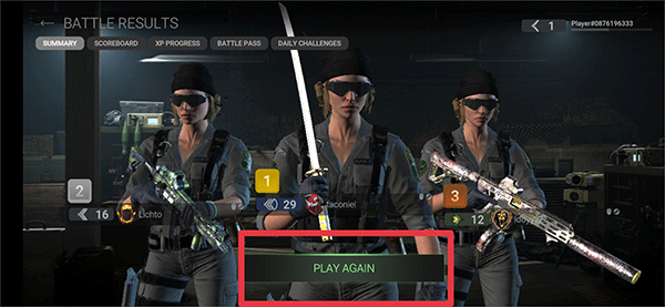 5. 对局结束后可在战绩页面查看表现,点击“Play Again”可立即开启新一轮挑战;