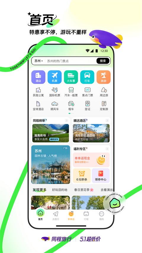 同程旅行官网版是一款集酒店、机票、火车票及行程预订于一体的旅游出行应用,提供接送机服务与国内航线折扣优惠,预订酒店还可参与点评赢奖金活动。