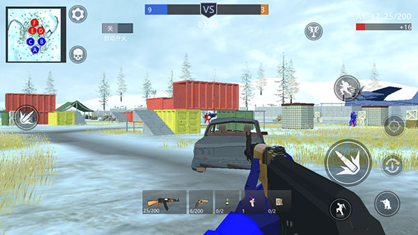 6、操作采用虚拟摇杆+按键布局:左侧滑动轮盘控制角色移动,右侧按钮分别执行射击、跳跃、蹲伏等关键动作,响应灵敏,易于上手。